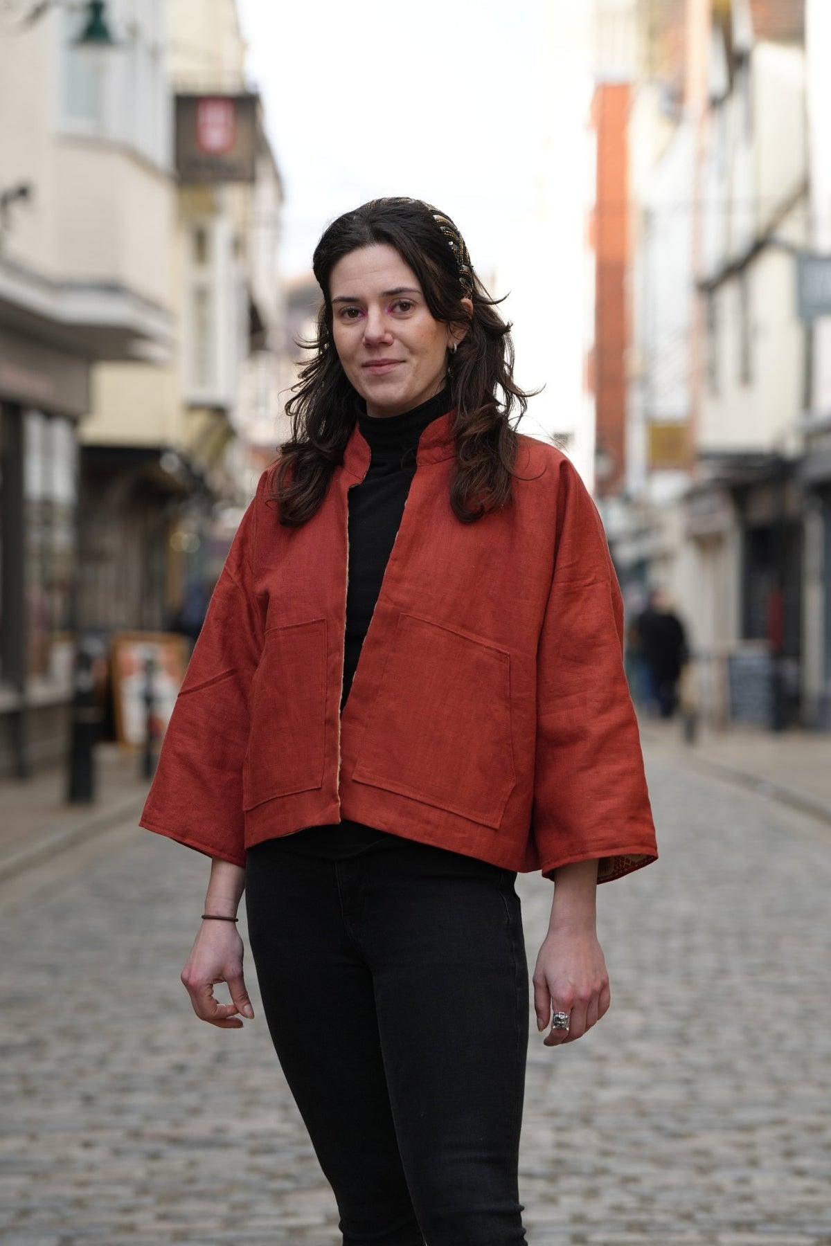 Warm Autumn Linen Jacket: Reversible - Violet Elizabeth - Clothing
