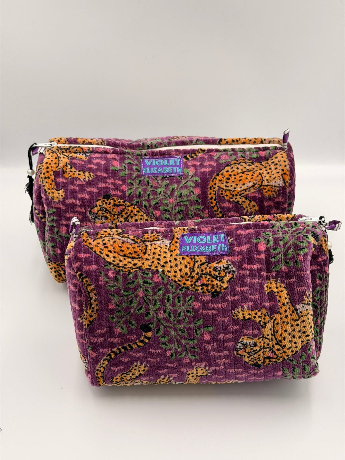 Handmade cotton wash bags, made with bright and vibrant traditional block printed cotton fabric. The outer cover is a cotton kantha fabric with a waterproof plastic lining. Each bag has a beaded tassel on the zip, perfect for your trip away.