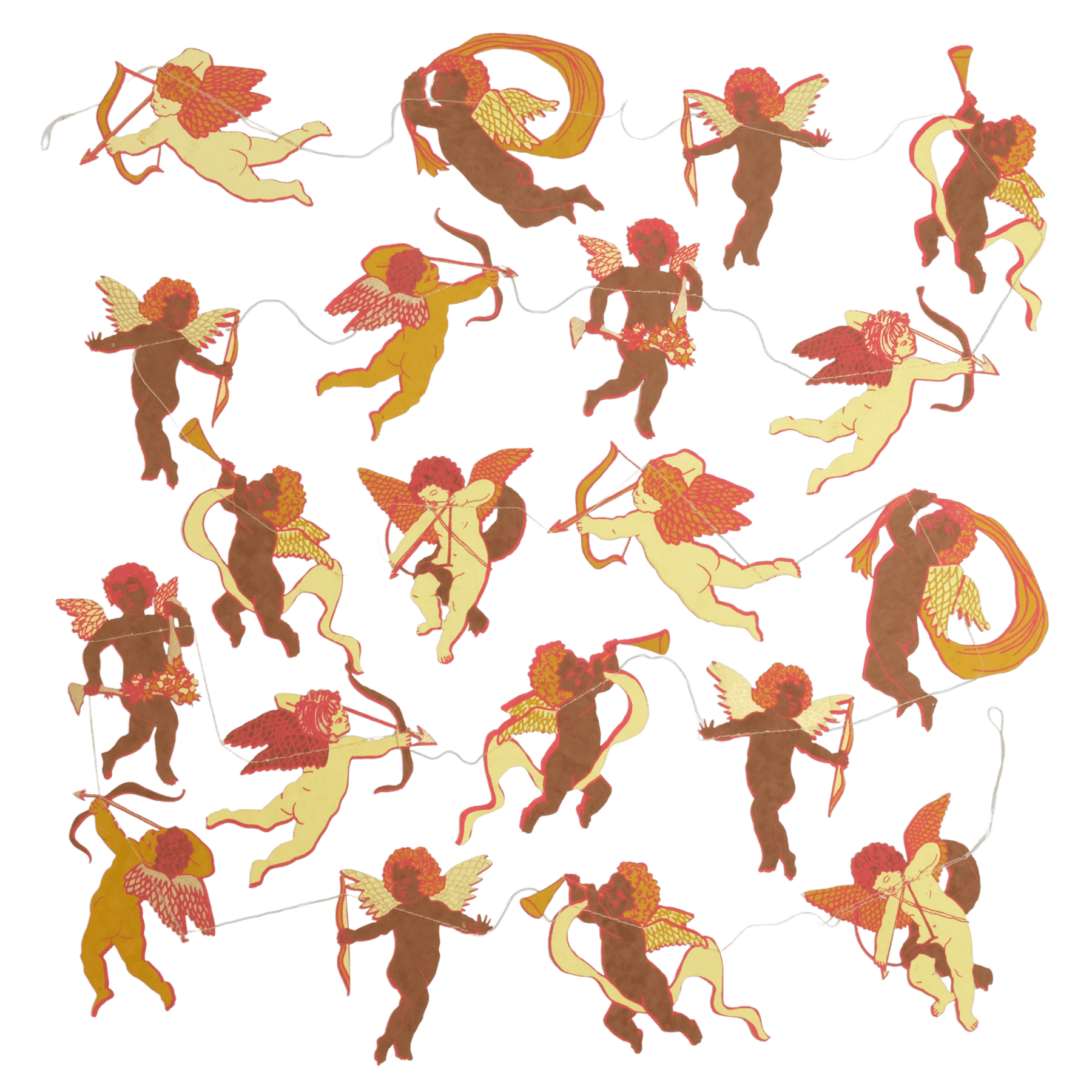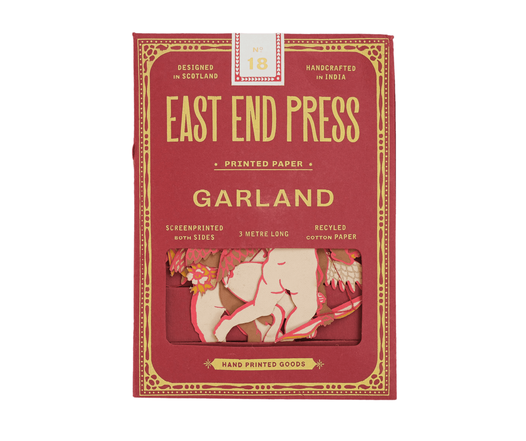 Sixteen angelic cupids are flying along this garland, ready to shoot their arrows at unsuspecting victims. Minimum order: 6 - 3 metres long - Includes 10 paper shapes, sewn along strong cotton thread - Screen printed by hand on both sides by talented artisans in Jaipur - Sustainably made from recycled materials